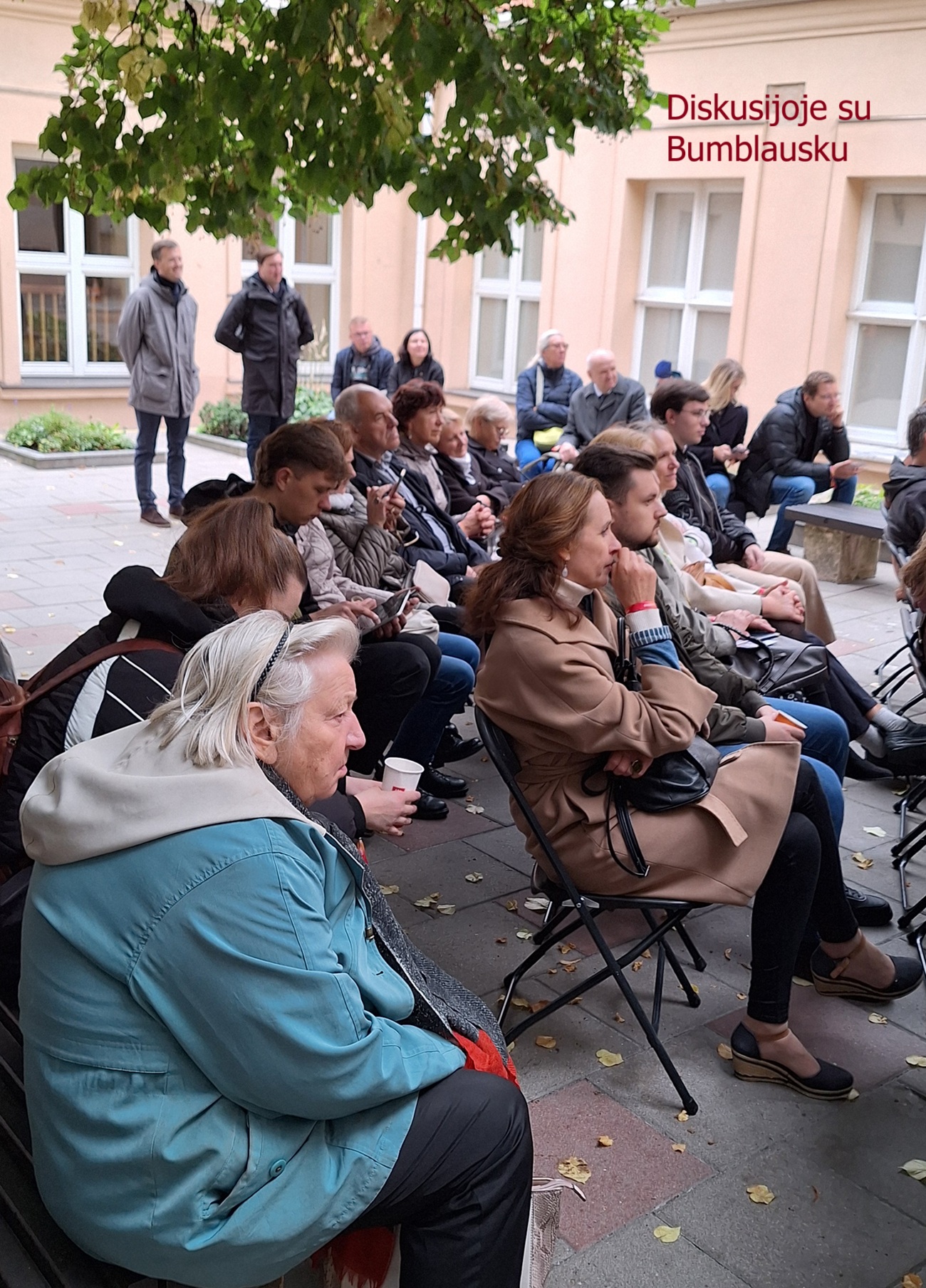 pagal savo interesus ir domėjimąsi (smalsumo vedini): vieni VU Istorijos fakulteto kiemelyje nusprendė pasiklausyti diskusijos su